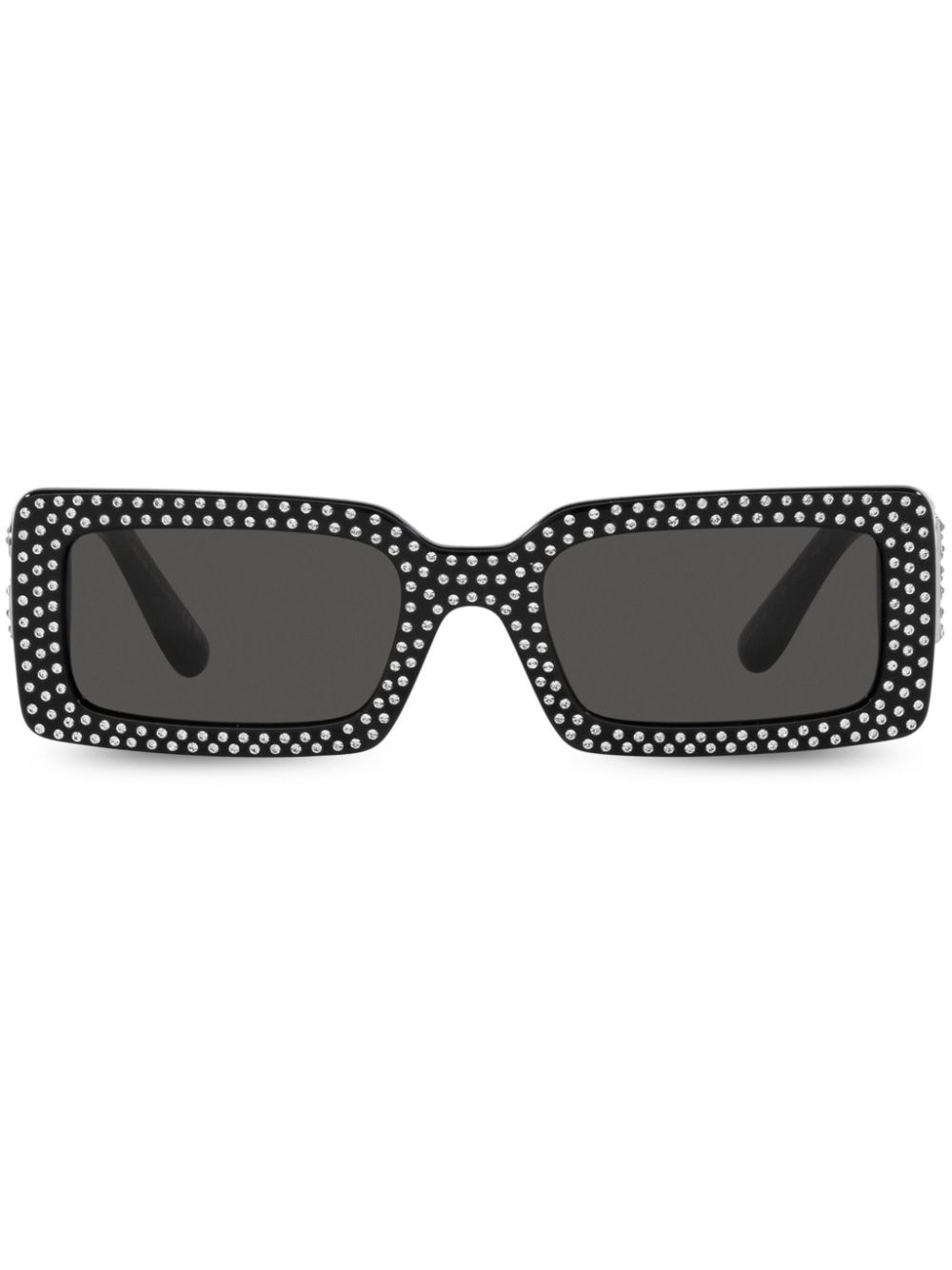 crystal-embellished rectangle-frame sunglasses Highlights - Black - Rectangle frame - Silver-tone hardware - Logo-embossed arm - Crystal embellishment - Grey tinted lenses - Uv-protective lenses - Oversize arms - Curved tips - These glasses come with a protective case. Made in Italy Composition Nylon 100% SIZE & FIT Measurement Arm Length 5.51 in(14 cm) Bridge Width 0.78 in(2 cm) Lens Diameter 2.08 in(5.3 cm) WIDTH 5.51 in(14 cm)