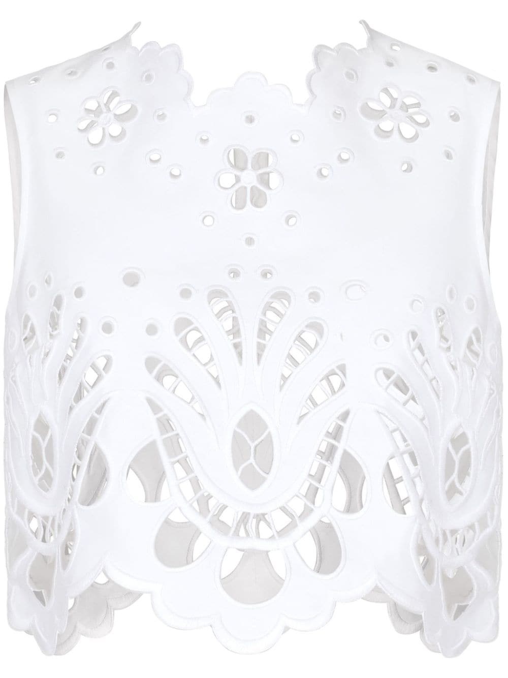 cut-out cotton crop top Highlights - White - Cotton - Cut-out detailing - Sleeveless - Round neck - Concealed rear fastening - Cropped Made in Italy Composition Cotton 96%, Polyester 4%