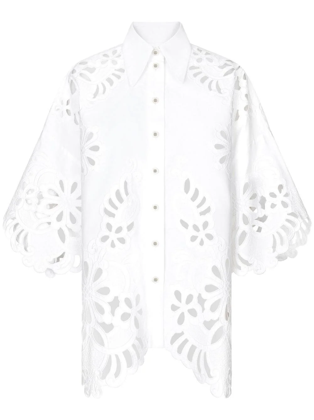 cut-out cotton shirt Highlights - White - Cotton - Cut-out detailing - Classic collar - Front button fastening - Three-quarter length sleeves - Straight hem Made in Italy Composition Cotton 100%
