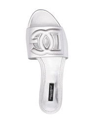 DG Millenials metallic leather sandals Who says flat sandals can't be elegant? This Dolce & Gabbana pair is here to prove everyone wrong with its metallic finish and elegant logo-embossed strap. Treat your feet. Highlights - Silver tone - Leather - Metallic finish - Open toe - Cut-out detailing - Logo-embossed strap - Slip-on style - Branded leather insole - Flat leather sole Made in Italy Composition Outer: Leather 100% Lining: Leather 100% Sole: Leather 100% SIZE & FIT Measurement HEEL 0.39 in(1 cm) Sole height 0.39 in(1 cm)