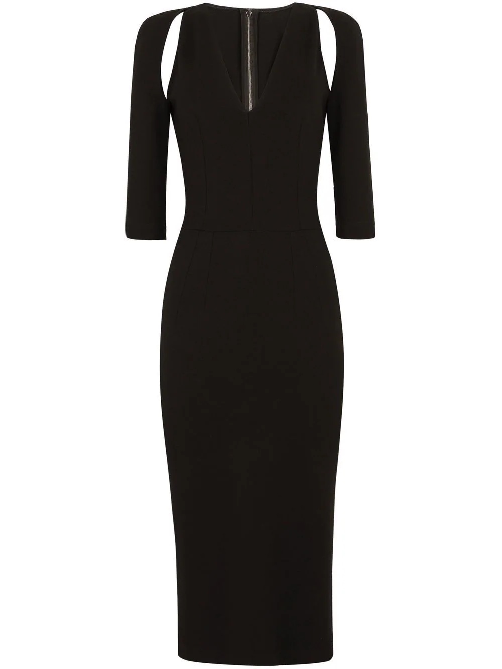 cut-out midi dress black cut-out detailing half-length sleeves V-neck below-knee length concealed rear zip fastening Made in Italy Composition Outer: Rayon 75%, Nylon 17%, Spandex/Elastane 8%
