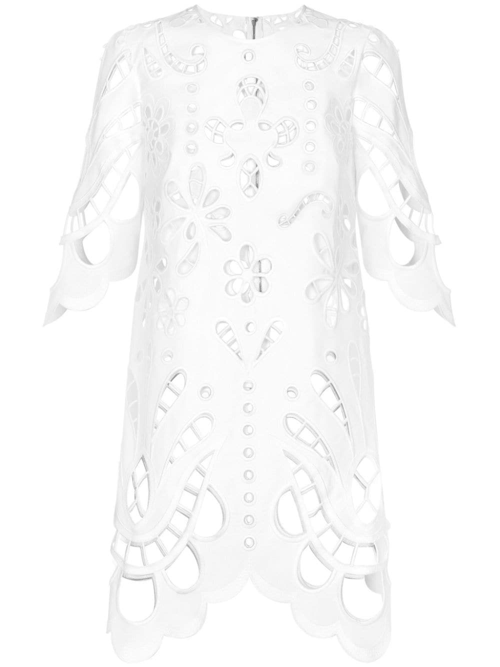 cut-out shift minidress Highlights - White - Cotton blend - Round neck - Short sleeves - Rear zip fastening - Above-knee length - Scallop hem Made in Italy Composition Cotton 97%, Polyester 3%