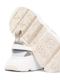Daymaster chunky sneakers Who said that sneakers were only meant for the scruffy? They obviously have never come across these sleek white lambskin Daymaster chunky sneakers from Dolce & Gabbana that would fit in at a gallery or even a dinner meeting with a client. These shoes are more versatile than you think. Featuring a round toe, contrasting panels, a printed logo, a lace-up front fastening, a pull tab at the rear and a ridged rubber sole. Made in Italy Composition Outer: Polyester 50%, Viscose 20%, Acetate 15%, Lambskin 15%, Cotton 10% Lining: Calf Leather 100% Sole: Rubber 100% SIZE & FIT Measurement HEEL 2.36 in(6 cm) Sole height 1.77 in(4.5 cm)