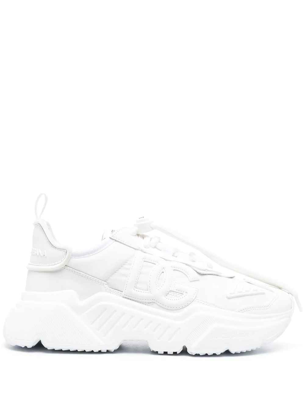 Daymaster leather sneakers Dolce & Gabbana updates its Daymaster sneakers in an understated all-white iteration. Set on chunky rubber soles, it's minimally decorated with a logo patch at the tongue. Made in Italy Composition Leather 100% SIZE & FIT Measurement HEEL 1.77 in(4.5 cm) Sole height 0.98 in(2.5 cm)