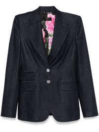 denim blazer Highlights - Indigo blue - Front button fastening - Shoulder pads - Three side flap pockets - Buttoned cuffs Made in Italy Composition Outer: Lyocell 43%, Cotton 28%, Modal 22%, Silk 5%, Elastane 2% Lining: Polyester 97%, Elastane 3% SIZE & FIT Model measurements Height 5 ft 10 in(1.78 m) Bust/Chest 33.46 in(85 cm) Hips 36.22 in(92 cm) Waist 23.22 in(59 cm) FittingInformation Designed for a slim fit that sits just away from the body offering a close yet comfortable fit The internal shoulder pads offer a structured shape Constructed from stretch denim, this piece offers a stretch fit with durability