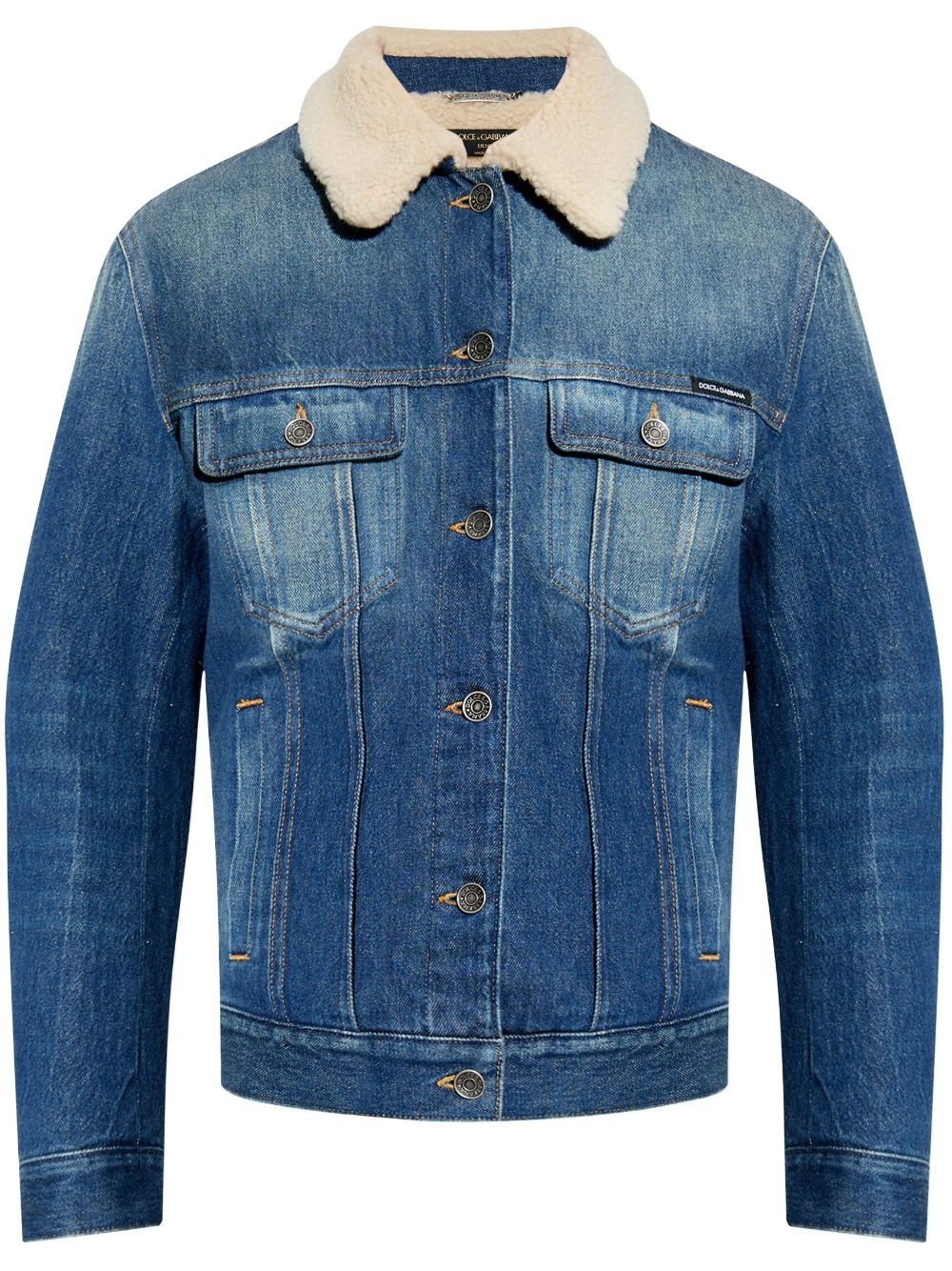 denim jacket Highlights - Indigo blue - Cotton - Washed denim - Faded effect - Front button fastening - Faux-fur collar - Long sleeves - Applique logo - Two chest flap pockets - Two side welt pockets - Logo plaque - Straight hem Made in Italy Composition Cotton 100%