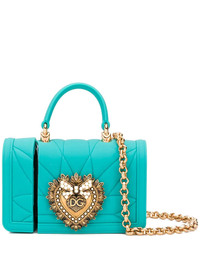 mini Devotion AirPods holder Highlights - Hopelessly devoted... to your airpods? keep them safe in this turquoise devotion airpods holder. courtesy of dolce & gabbana. featuring a quilted effect, a front logo plaque, an optional chain strap and a round top handle. Made in Italy Composition Silicone 100% SIZE & FIT Measurement DEPTH 1.18 in(3 cm) HEIGHT 2.16 in(5.5 cm) WIDTH 3.54 in(9 cm) STRAP 25.19 in(64 cm) HANDLE 1.18 in(3 cm)