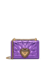 medium Devotion shoulder bag Highlights - Violet purple - Calf leather/lambskin - Metallic finish - Matelasse effect - Gold-tone hardware - Faux-pearl detailing - Leather and chain-link shoulder strap - Foldover top - Internal zip-fastening pocket - Push-lock fastening Made in Italy Composition Lining: Cotton 75%, Lambskin 20%, Acrylic 5% Outer: Lambskin 65%, Calf Leather 35% SIZE & FIT Measurement DEPTH 1.18 in(3 cm) HEIGHT 5.7 in(14.5 cm) WIDTH 8.26 in(21 cm)
