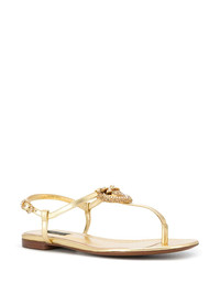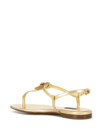 Devotion leather thong sandals Missing the warm weather? Crafted from leather, these gold Devotion T-strap sandals from Dolce & Gabbana will take you straight back to last summer's Italian getaway. Limoncello not included, sadly. Highlights - Gold - Leather/lambskin - T-strap - Open toe - Buckle-fastening ankle strap - Branded insole - Low heel - Hand-crafted bejewelled branded heart Made in Italy Composition Lining: Leather 100% Sole: Leather 100%, Rubber 100% Outer: Lambskin 100% SIZE & FIT Measurement HEEL 0.59 in(1.5 cm)