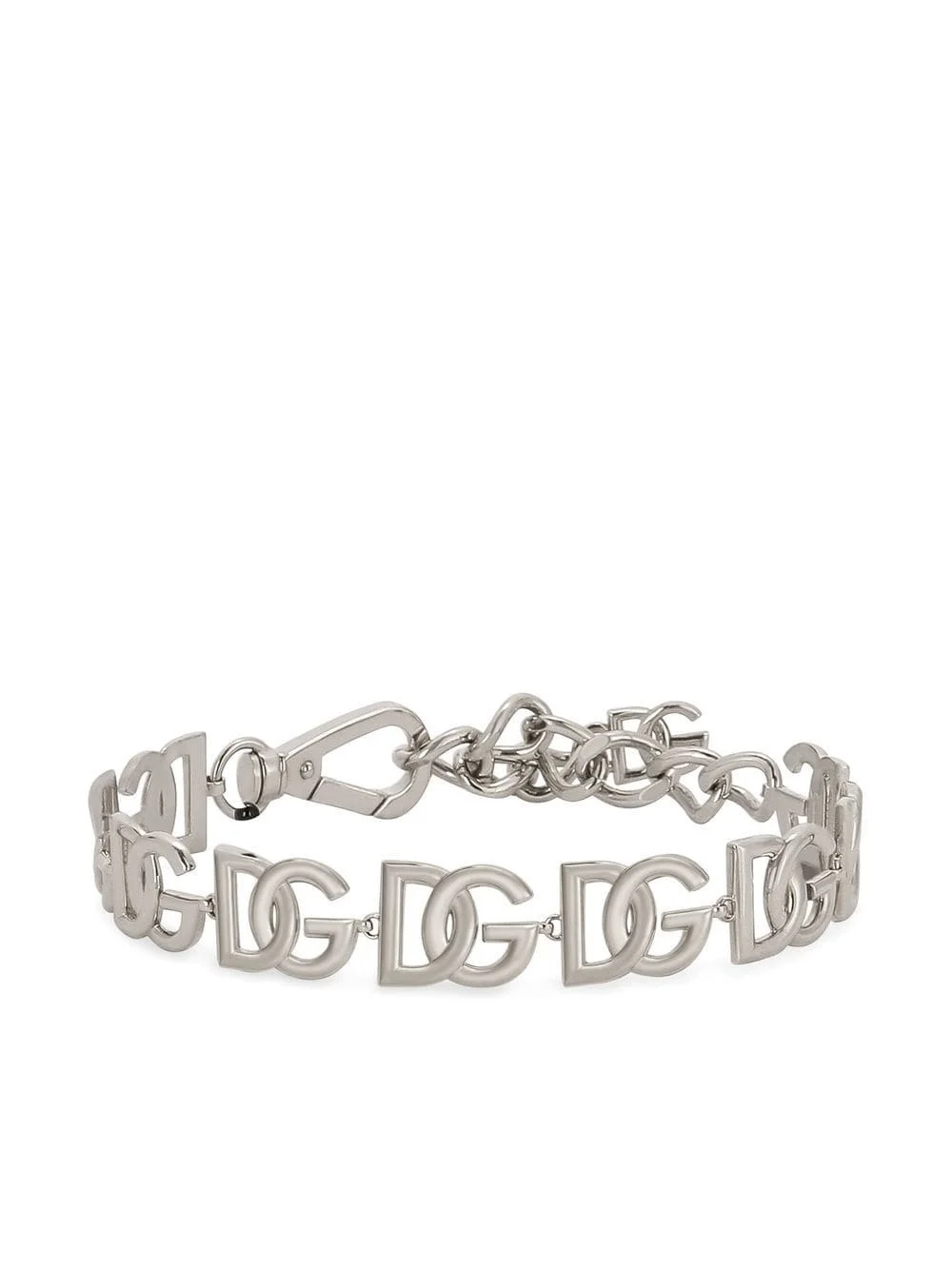 KIM DOLCE&GABBANA DG-logo choker An homage to logomania, Dolce & Gabbana's necklace spotlights the brand's iconic monogram. A row of the interlocking letters adorns this adjustable silver-tone iteration. Highlights - Silver-tone - Brass - Dg logo chain - Choker chain - Carabiner fastening Made in Italy