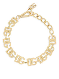 DG-logo chain-link choker An homage to logomania, Dolce & Gabbana's necklace spotlights the brand's iconic monogram. A row of the interlocking letters adorns this adjustable gold-tone iteration. Highlights - Dg charm necklace from dolce & gabbana featuring gold-tone, polished finish, monogram plaque, carabiner fastening and adjustable-length chain. Made in Italy