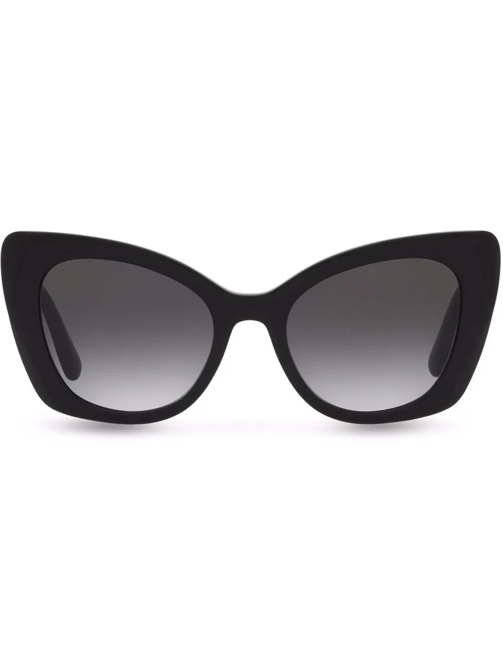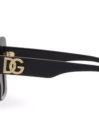 DG Crossed sunglasses black acetate cat-eye frame tinted lenses logo plaque at the arm straight arms curved tips These glasses come with a protective case. Made in Italy Composition Acetate 100% SIZE & FIT Measurement Arm Length 5.51 in(14 cm) Bridge Width 0.78 in(2 cm) Lens Diameter 2.08 in(5.3 cm)