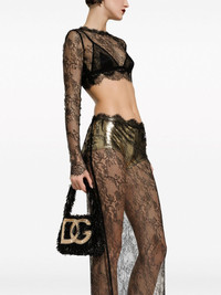 DG crystal-embellished crossbody bag Highlights - Black - Fringe detailing - Crystal embellishment - Gold-tone logo lettering - Single top handle - Foldover top with magnetic fastening - Main compartment - Internal logo plaque - Internal zip-fastening pocket Made in Italy Composition Outer: Rayon 42%, glass 30%, Polyester 18%, Silk 10%
