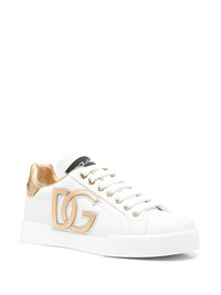 DG-embellished low-top sneakers Highlights - Chalk white - Calf leather - Logo-embellished side panels - Logo patch at the tongue - Metallic heel counter - Front lace-up fastening - Round toe - Branded leather insole - Flat rubber sole Made in Italy Composition Leather 100% SIZE & FIT Measurement HEEL 1.18 in(3 cm) Sole height 0.78 in(2 cm)