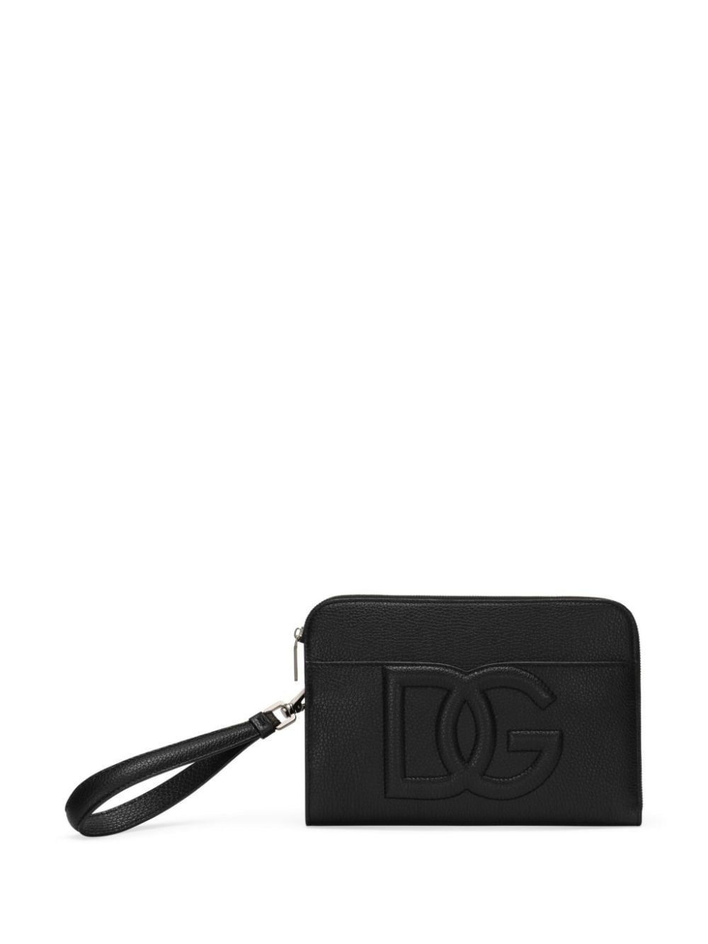DG-embossed leather clutch bag Highlights - Black - Deerskin - Pebbled texture - Embossed logo to the front - Silver-tone hardware - Detachable wrist strap - Top zip fastening - Slip pocket to the front - Main compartment - Internal logo plaque - This piece comes complete with a protective dust bag. - This item comes from our partner boutiques in a variety of countries and cannot be shipped outside its region (either us, uae, or the eu & uk). please check the country of origin in the shipping & free returns tab or your shopping bag to make sure it can be delivered to your location. Made in Italy Composition Outer: Deer Skin 100% Lining: Cotton 60%, Acrylic 30%, Deer Skin 10% SIZE & FIT Measurement DEPTH 1.18 in(3 cm) HEIGHT 6.88 in(17.5 cm) WIDTH 10.62 in(27 cm)