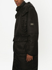 logo-tag hooded puffer coat Highlights - Black - Padded design - Logo plaque - Classic hood - Concealed front fastening - Long sleeves - Two side zip-fastening pockets - Two front flap pockets - Mid-length Made in Italy Composition Lining: Polyester 100% Outer: Nylon 100%