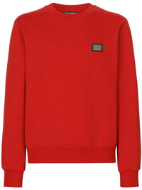 DG Essentials jersey sweatshirt From Dolce & Gabbana's 'Essential' collection, which includes a range of timeless, iconic pieces, this sweatshirt is adorned with the brand's logo plaque at the chest, Highlights - Red - Cotton - Jersey fleece - Logo plaque - Crew neck - Long sleeves - Straight hem Made in Italy Composition Cotton 100% SIZE & FIT FittingInformation Designed for a relaxed fit, this piece allows for comfort and movement when worn Made with a midweight knit, this piece offers some stretch This piece fits true to size – take your usual size