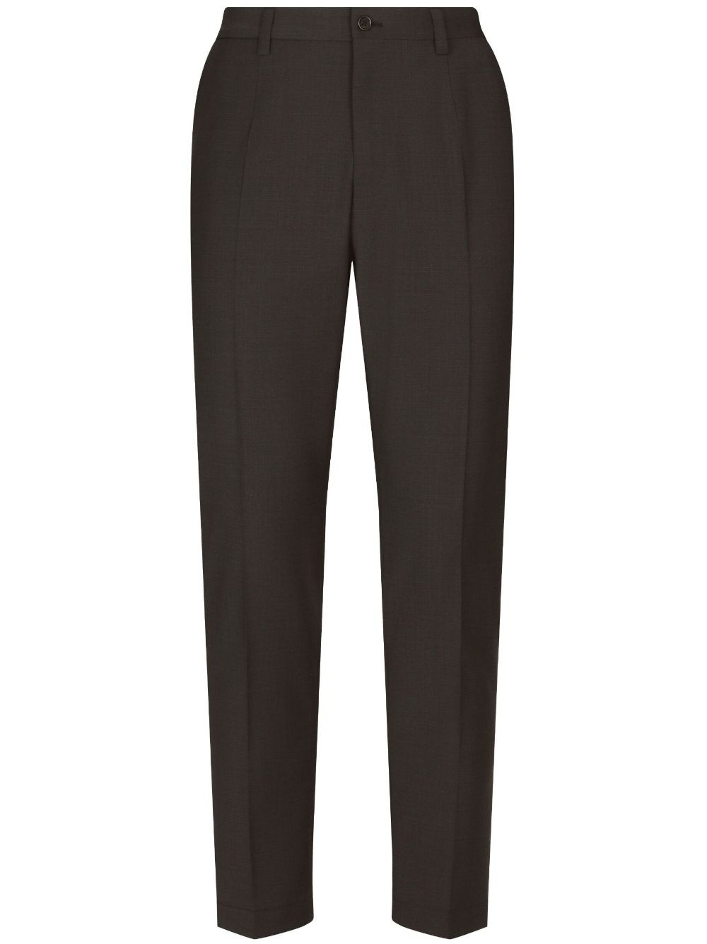 DG Essentials logo-embroidered trousers Dolce & Gabbana update the traditionally tailored trousers silhouette for the new season. This pair comes anchored with an embroidered DG logo along the rear for a branded touch. Highlights - Grey - Wool blend - High waist - Front button and zip fastening - Slip pockets to the sides - Straight leg Made in Italy Composition Wool 55%, Polyester 41%, Elastane 4%