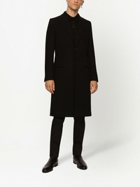 single-breasted wool coat Dolce & Gabbana's SS23 pays tribute to the '70s punk era through the use of solid colourways. From the collection, this single-breasted coat showcases the theme, in its all-black hue and minimalist design. Highlights - Black - Wool blend - Silk lining - Peak lapels - Front button fastening - Long sleeves - Mid-length Made in Italy Composition Lining: Silk 100% Wool 80%, Nylon 20% SIZE & FIT FittingInformation Designed for a boxy fit, intended for a loose fit throughout The internal shoulder pads offer a structured shape Made from a midweight non-stretch fabric, this piece offers minimal elasticity when worn Measurement CHEST 44.09 in(112 cm) LENGTH 45.66 in(116 cm) WAIST 41.33 in(105 cm) SLEEVE LENGTH 26.77 in(68 cm) Washing instructions Read Manufacturer Guidelines