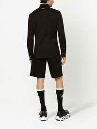 logo-applique denim shorts Dolce & Gabbana steps away from classic tailoring and instead reaches for more laid-back silhouettes. These denim shorts feature a casual straight-leg and rear logo patch for a branded touch. Highlights - Black - Stretch-cotton - Logo patch to the rear - High waist - Front button and zip fastening - Classic five pockets - Straight leg - Thigh-length Made in Italy Composition Cotton 98%, Elastane 2% Washing instructions Read Manufacturer Guidelines