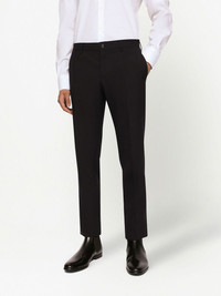 Sicilia-fit single-breasted suit Highlights - Black - Stretch virgin wool - Blazer: - Peak lapels - Front button fastening - Long sleeves - Buttoned cuffs - Chest welt pocket - Two front flap pockets - Full lining - Trousers: - Belt loops - Front button and zip fastening - Slim cut - Two side slit pockets - Two rear welt pockets Made in Italy Composition Lining: Rayon 100% Outer: Virgin Wool 98%, Spandex/Elastane 2% SIZE & FIT FittingInformation Tailored for a slim fit, offering a comfortable fit that sits just away from the body The unfinished hems allow for the length to be altered Made from a midweight non-stretch fabric This piece fits true to size – take your usual size