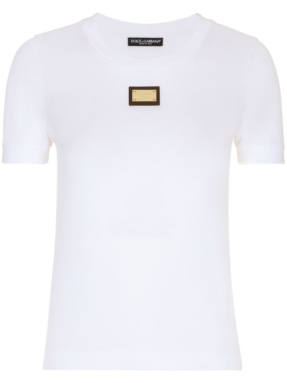 DG Essentials T-shirt Dolce & Gabbana's T-shirt is a celebration of the brand's signature. A gleaming logo plaque decorates the chest of this V-neck iteration. Highlights - White - Cotton - Scoop neck - Short sleeves - Logo plaque - Straight hem Made in Italy Composition Cotton 100% Washing instructions Read Manufacturer Guidelines
