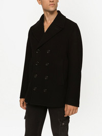 Double-breasted wool pea coat with branded tag