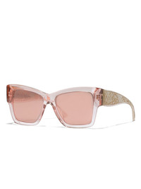 DG Lace sunglasses Highlights - Translucent pink - Rectangular frame - Tinted lenses - Decorative side detail - Logo engraved temples - Bold cat-eye shape - These glasses come with a protective case. Made in Italy Composition Acetate 100% SIZE & FIT Measurement Arm Length 5.7 in(14.5 cm) Bridge Width 0.66 in(1.7 cm) Lens Diameter 2.16 in(5.5 cm)