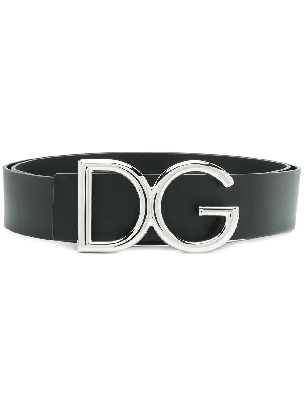 DG logo buckle belt Add a touch of logomania to your wardrobe with this DG logo buckle belt from Dolce & Gabbana. Crafted from luxury black Italian leather, this belt features a silver-tone logo buckle with a dome popper closure and an adjustable fit. Made in Italy Composition Leather 100% SIZE & FIT Measurement Minimum Length 34.64 in(88 cm) CIRCUMFERENCE 38.18 in(97 cm) TOTAL LENGTH 42.12 in(107 cm) WIDTH 1.57 in(4 cm)