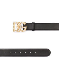 DG-logo rhinestone-embellished belt Highlights - Black - Leather - Logo buckle fastening - Crystal embellishment - Faux-pearl detailing - Punch-hole detailing - Adjustable fit Made in Italy Composition Outer: Calf Leather 100% Lining: Calf Leather 100%