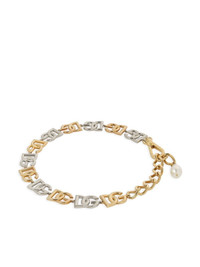 DG-logo chain necklace An homage to logomania, Dolce & Gabbana's necklace spotlights the brand's iconic monogram. A row of the interlocking letters adorns this adjustable gold and silver-tone iteration. Highlights - Dg-logo choker necklace from dolce & gabbana featuring gold-tone, silver-tone, brass, carabiner fastening, polished finish and dg logo chain. Made in Italy