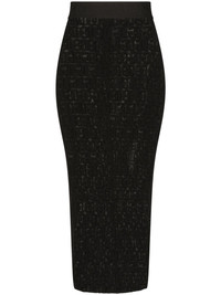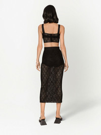 DG-logo tulle pencil skirt Decorated with the label’s signature DG logo, this Dolce & Gabbana skirt boasts a semi-sheer construction and presents a stretch design. Highlights - Black - All-over logo branding - High waist - Stretch-design - Rear zip fastening - Calf-length - Semi-sheer construction - Straight hem Made in Italy Composition Cotton 56%, Nylon 38%, Elastane 6% SIZE & FIT Measurement HIPS 25 in(63.5 cm) LENGTH 32.51 in(82.6 cm) WAIST 22 in(55.9 cm)