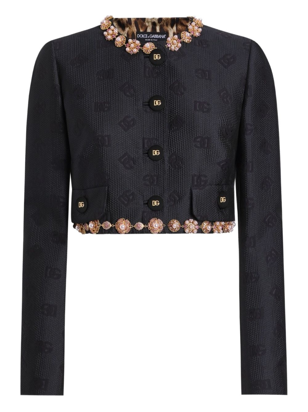 DNA DG logo-jacquard jacket Highlights - Black - Front button fastening - Two front flap pockets - Bead embellishment - Long sleeves Made in Italy Composition Cotton 44%, Polyester 32%, Silk 24% Washing instructions Read Manufacturer Guidelines