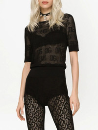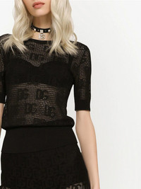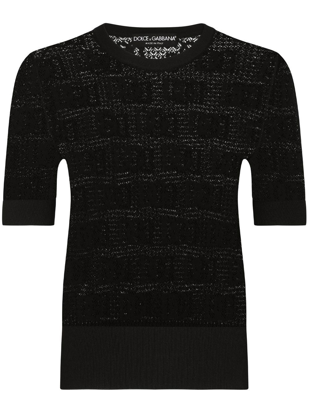 DG-logo jacquard jumper An intricate lace-knit design is made instantly recognisable, as seen in this viscose top from Dolce & Gabbana. The iconic DG logo is incorporated into its construction, offering a statement look to the piece. Made in Italy Composition Rayon 96%, Polyester 4%