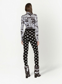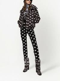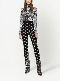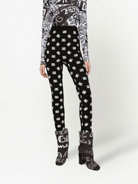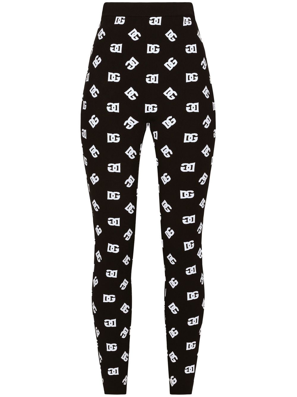 DG-logo jacquard leggings For AW22, Dolce & Gabbana opts for bold branding as depicted in these leggings. The straight-leg silhouette is enhanced with an unmistakable look thanks to the DG logo in patterned jacquard. Made in Italy Composition Rayon 83%, Polyester 17%