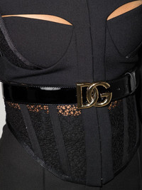 DG logo leather belt Dolce & Gabbana's understated belt design is contrasted by a gold-tone DG logo at the centre. Presented with a high-shine black finish, this accessory showcases the Italian house's ability to add its signature bold aesthetic to sleek silhouettes. Made in Italy Composition Polyurethane 66%, Polyester 22%, Cotton 12% SIZE & FIT Model measurements Height 5 ft 10 in(1.78 m) Bust/Chest 33.07 in(84 cm) Hips 35.03 in(89 cm) Waist 25.19 in(64 cm) Measurement Minimum Length 27.95 in(71 cm) TOTAL LENGTH 31.88 in(81 cm) WIDTH 1.37 in(3.5 cm)