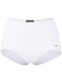 DG plaque high-waisted bikini bottoms Laying on the beach never felt better than this. This Dolce & Gabbana bikini bottom is designed in white with a traditional high waist. Now just kick your feet up and enjoy your flawless look. Made in Italy Composition Outer: Polyamide 75%, Spandex/Elastane 25% Lining: Polyamide 80%, Spandex/Elastane 20% Washing instructions Hand Wash