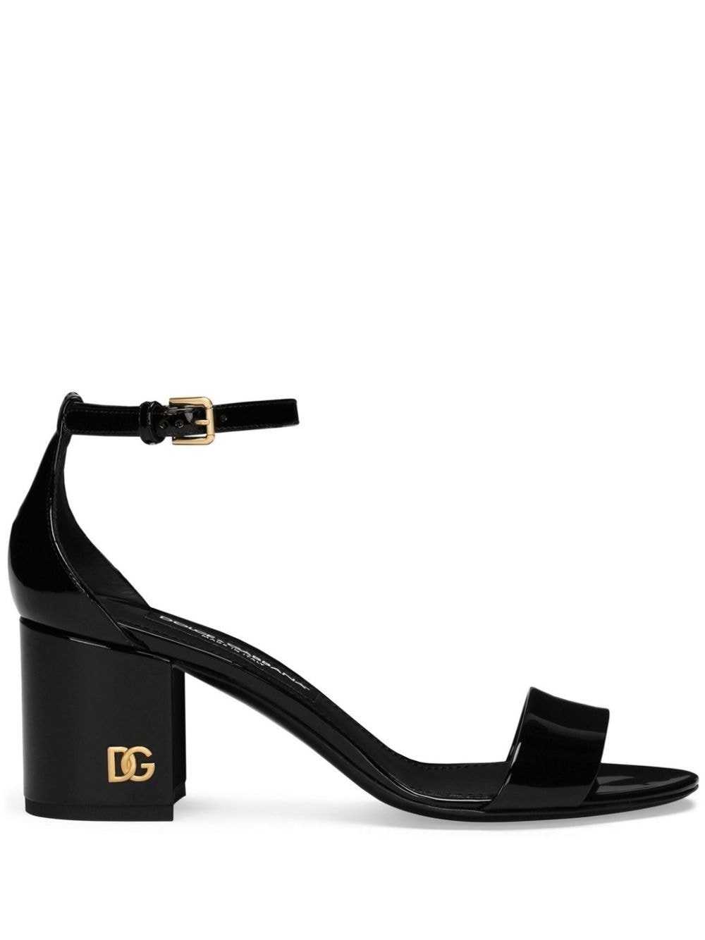 60mm Keira sandals Highlights - Black - Calf leather - Patent finish - Gold-tone logo plaque - Gold-tone hardware - Almond open toe - Single toe strap - Buckle-fastening ankle strap - Branded leather insole - Block heel - Leather sole Made in Italy Composition Lining: Goat Skin 76%, Calf Leather 24% Outer: Calf Leather 100% Sole: Leather 100%