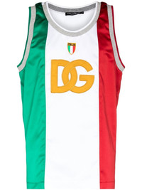 DG striped tank top Adorned with a DG logo patch at the front, this basketball-inspired tank top evokes Dolce & Gabbana's Italian heritage by displaying the colours of the country's flag. Made in Italy Composition Lining: Polyamide 100% Outer: Polyester 100% Washing instructions Machine Wash