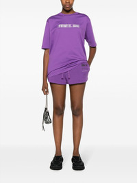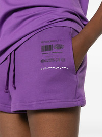 DG VIBE cotton track shorts Dolce & Gabbana's DG VIBE collection draws upon the bustling energy of the city, as demonstrated by the lineup’s vivid hues and graphic prints. A case in point, these cotton-jersey track shorts are adorned with a contrasting futuristic motif at the sides. Highlights - Violet purple - Cotton - Jersey texture - Graphic print to the front - Elasticated drawstring waistband - Two side slash pockets - Thigh-length Made in Italy Composition Cotton 100% SIZE & FIT Model measurements Height 5 ft 9 in(1.76 m) Bust/Chest 33.07 in(84 cm) Hips 38.58 in(98 cm) Waist 24.8 in(63 cm) FittingInformation Designed for a slim fit that sits just away from the body offering a close yet comfortable fit Adjust this piece’s waistband to your preference using the drawstring Made from a midweight non-stretch fabric, this piece offers minimal elasticity when worn This piece fits true to size – take your usual size Washing instructions Machine Wash