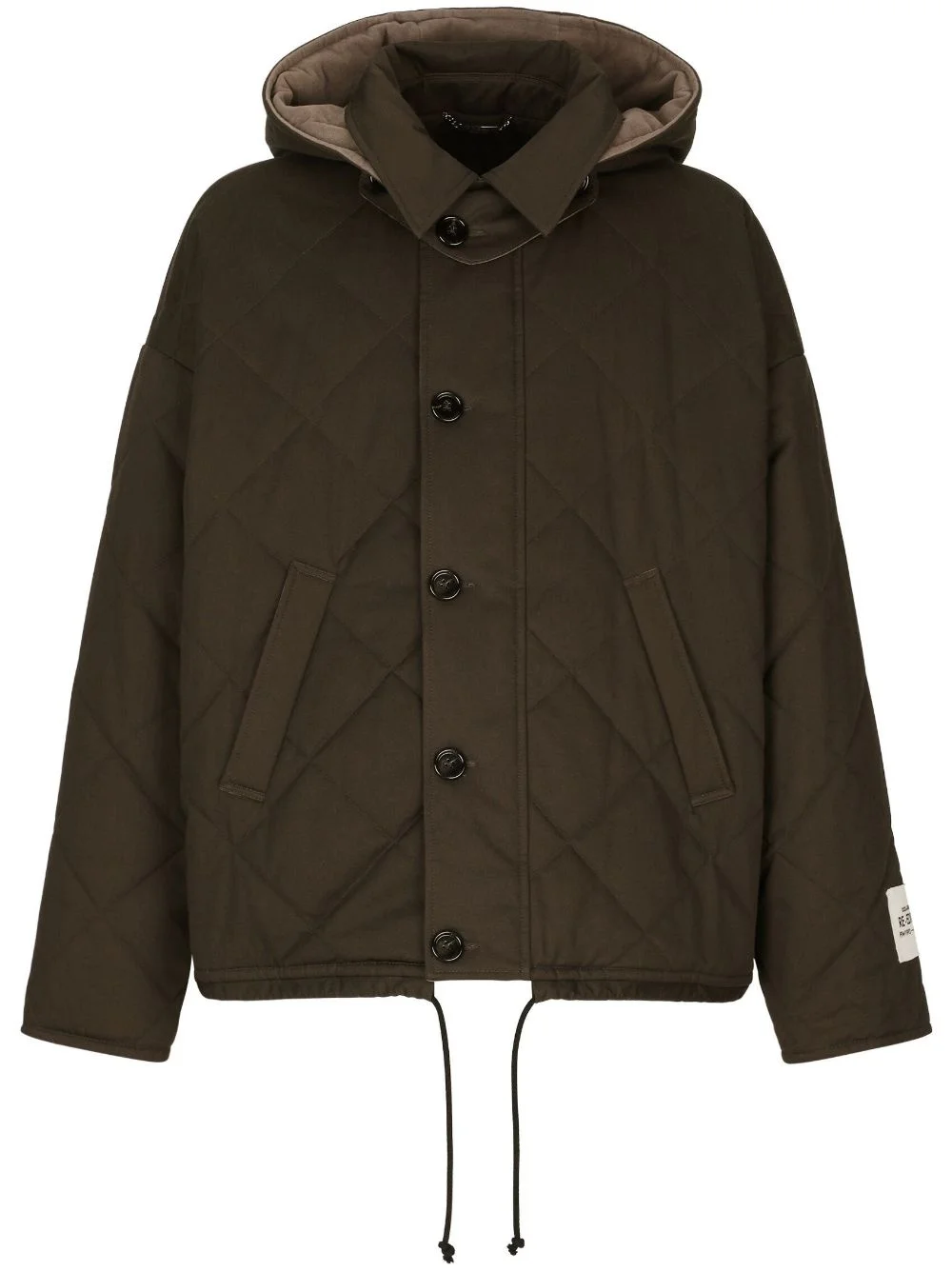 diamond-quilt padded jacket Highlights - Brown - Cotton - Padded design - Diamond quilting - Logo patch at the sleeve - Straight-point collar - Detachable hood - Front button fastening - Long sleeves - Two side slit pockets - Drawstring hem Made in Italy Composition Cotton 100%