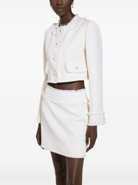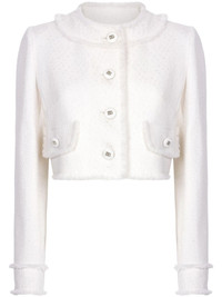 DNA frayed cropped jacket Highlights - Cream white - Front button fastening - Long sleeves - Front flap pockets - Cropped - Distressed effect Made in Italy Composition Outer: Virgin Wool 67%, Viscose 27%, Polyamide 6% Lining: Silk 92%, Spandex/Elastane 8%