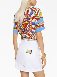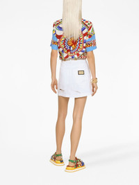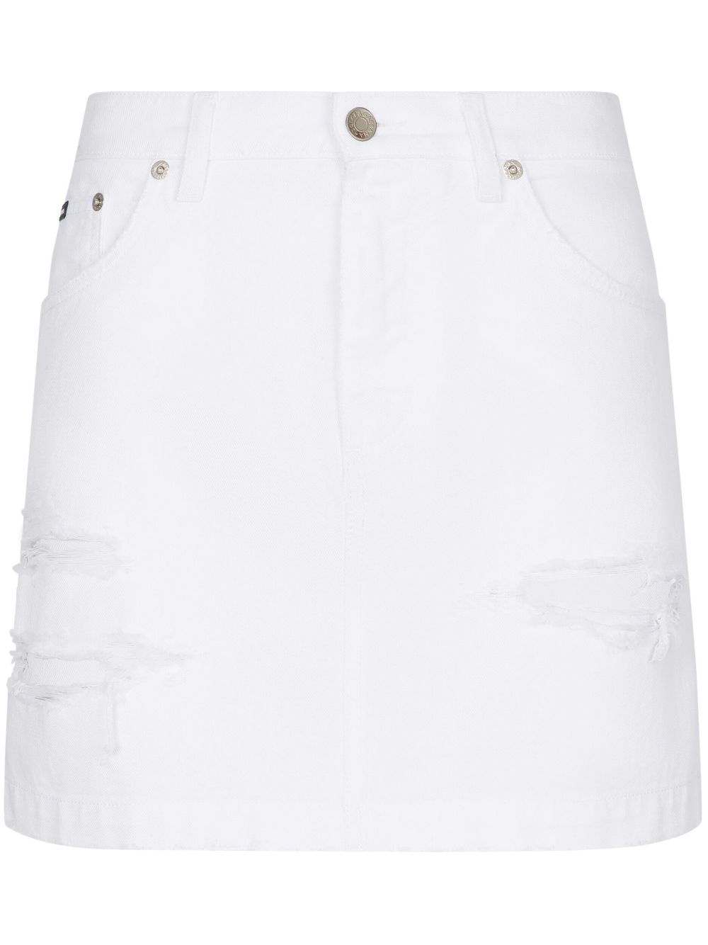 distressed denim miniskirt Dolce & Gabbana adopts a more pared-back approach to design with this miniskirt. It's cut from white denim that's been distressed to create skin-baring rips and frayed accents. Highlights - White - Cotton - Distressed effect - Logo patch to the rear - Belt loops - Front button and zip fastening - Classic five pockets - Thigh-length Made in Italy Composition Cotton 100% SIZE & FIT Measurement HIPS 32 in(81.3 cm) LENGTH 15 in(38.1 cm) WAIST 27 in(68.6 cm) Washing instructions Read Manufacturer Guidelines