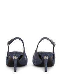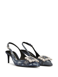 60mm patchwork-denim slingback pumps Realised in distressed denim, this intriguing design from Dolce & Gabbana is punctuated with crystal-embellished buckle detailing at the toe. Meanwhile, a silver-tone logo plaque accents the stiletto heel for a branded finish. Highlights - Blue - Leather - Denim - Distressed effect - Silver-tone logo plaque - Buckle detail at the toe - Crystal embellishment - Pointed toe - Buckle-fastening ankle strap - Branded insole - Stiletto heel Made in Italy Composition Cotton 100%