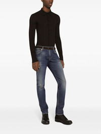 distressed-effect skinny jeans Highlights - Blue - Stretch-cotton - Denim - Distressed effect - Ripped detailing - Belt loops - Concealed fly and button fastening - Classic five pockets - Skinny cut Made in Italy Composition Cotton 98%, Spandex/Elastane 2%