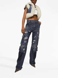 distressed-finish straigh-leg cargo jeans