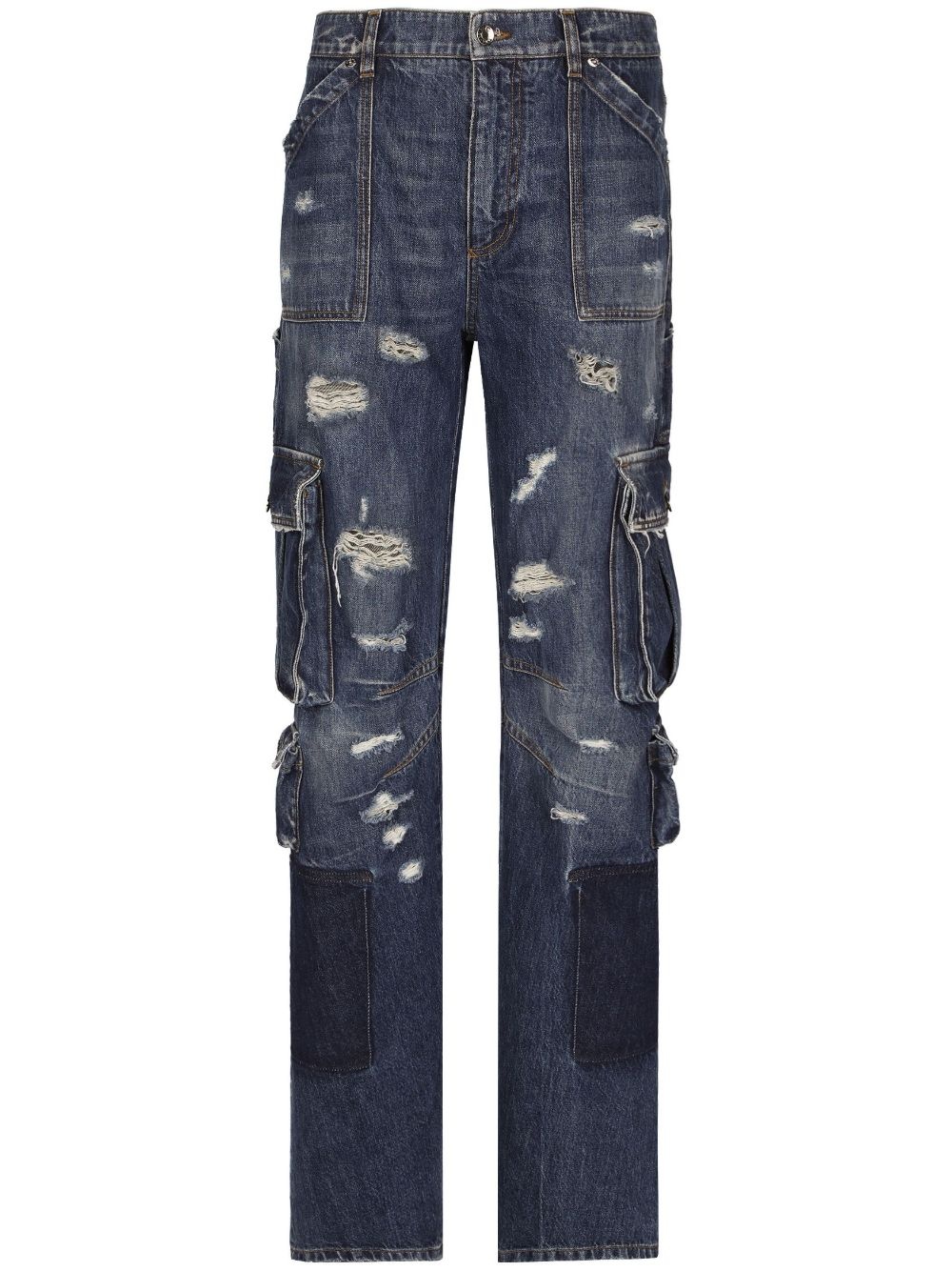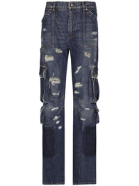 distressed-finish straigh-leg cargo jeans Highlights - Blue - Cotton - Washed denim - Distressed finish - Ripped detailing - Logo plaque - Belt loops - Button fly fastening - Mid-rise - Straight leg - Two front patch pockets - Multiple cargo pockets - Two rear patch pockets - Straight hem Made in Italy Composition Cotton 100% Washing instructions Read Manufacturer Guidelines