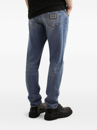 distressed logo-plaque jeans