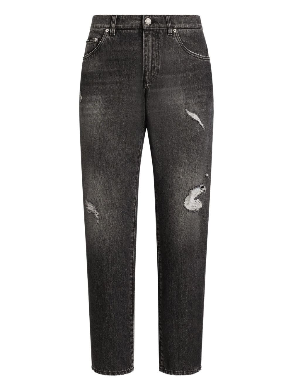 distressed logo-plaque jeans Highlights - Black - Distressed detailing - Faded wash - Five-pocket styling - Logo plaque - Button fly Made in Italy Composition Cotton 100% Washing instructions Read Manufacturer Guidelines