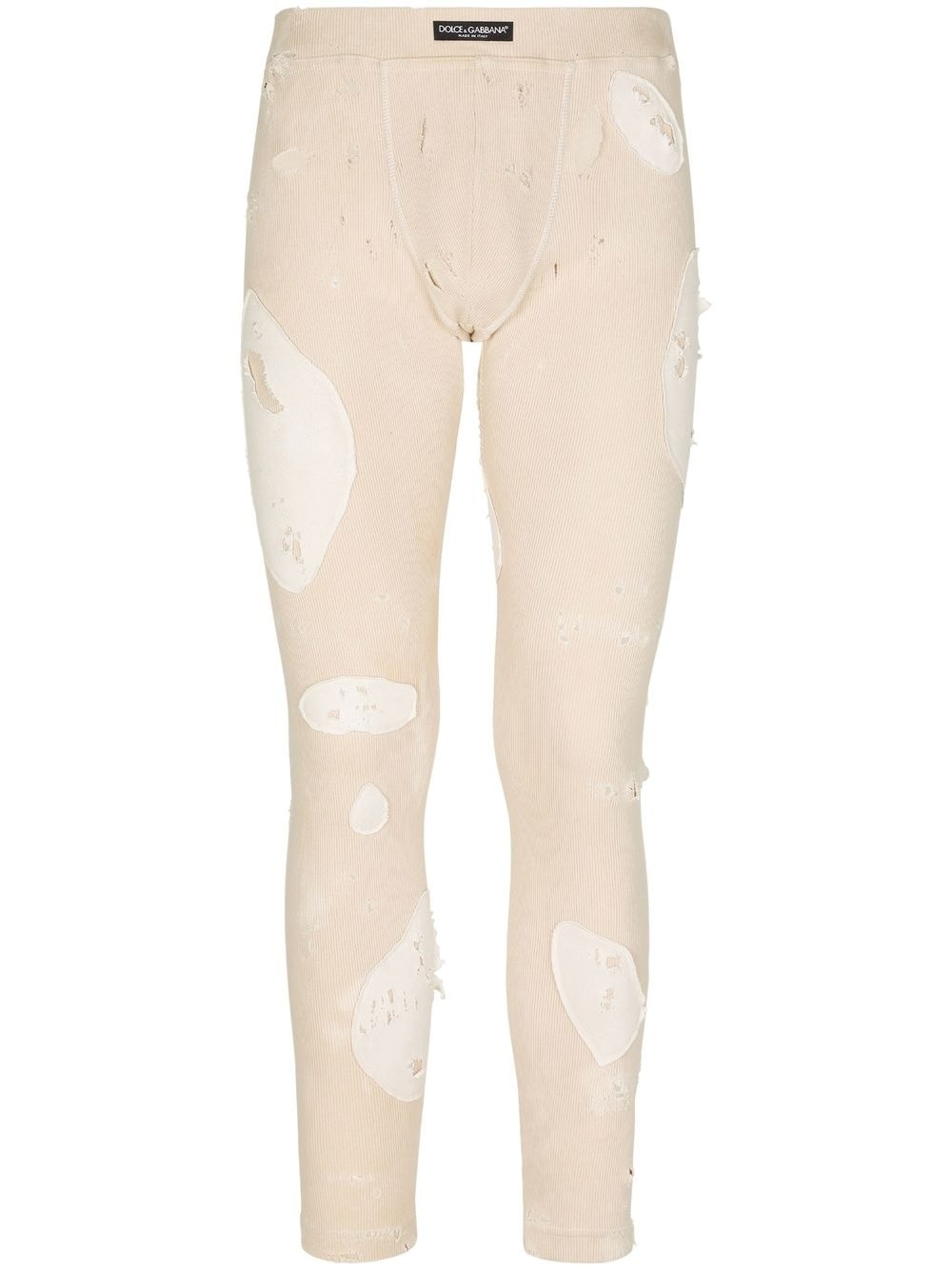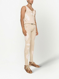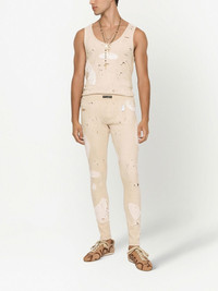 distressed skinny-cut jeans beige/white cotton blend front button fastening two diagonal pockets to the sides two rear patch pockets skinny cut Made In Italy Composition Cotton 90%, Elastane 10% Washing instructions Read Manufacturer Guidelines